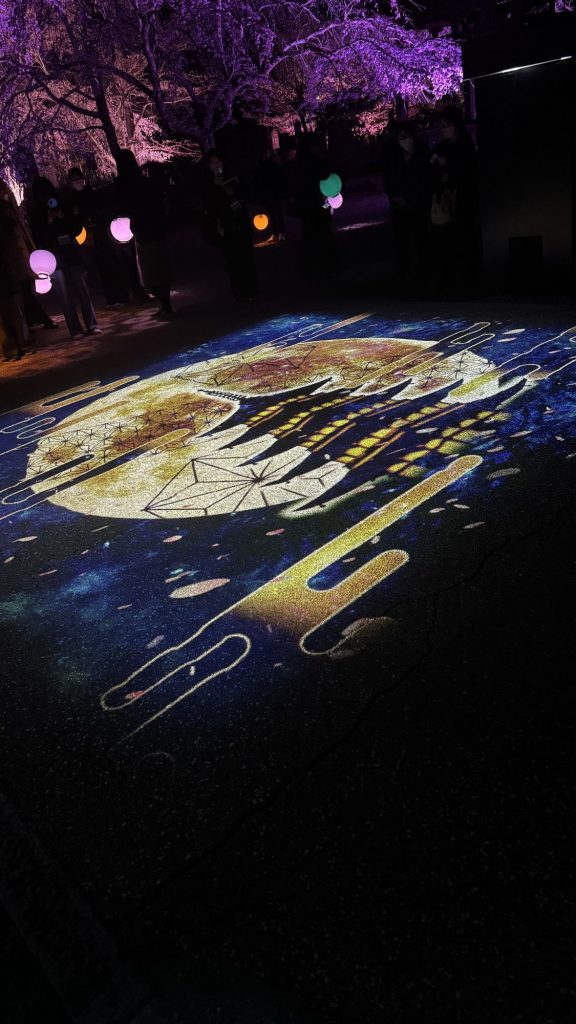 by cherry blossoms, you can leisurely enjoy tea and sweets while experiencing the movements and lighting effects up close.